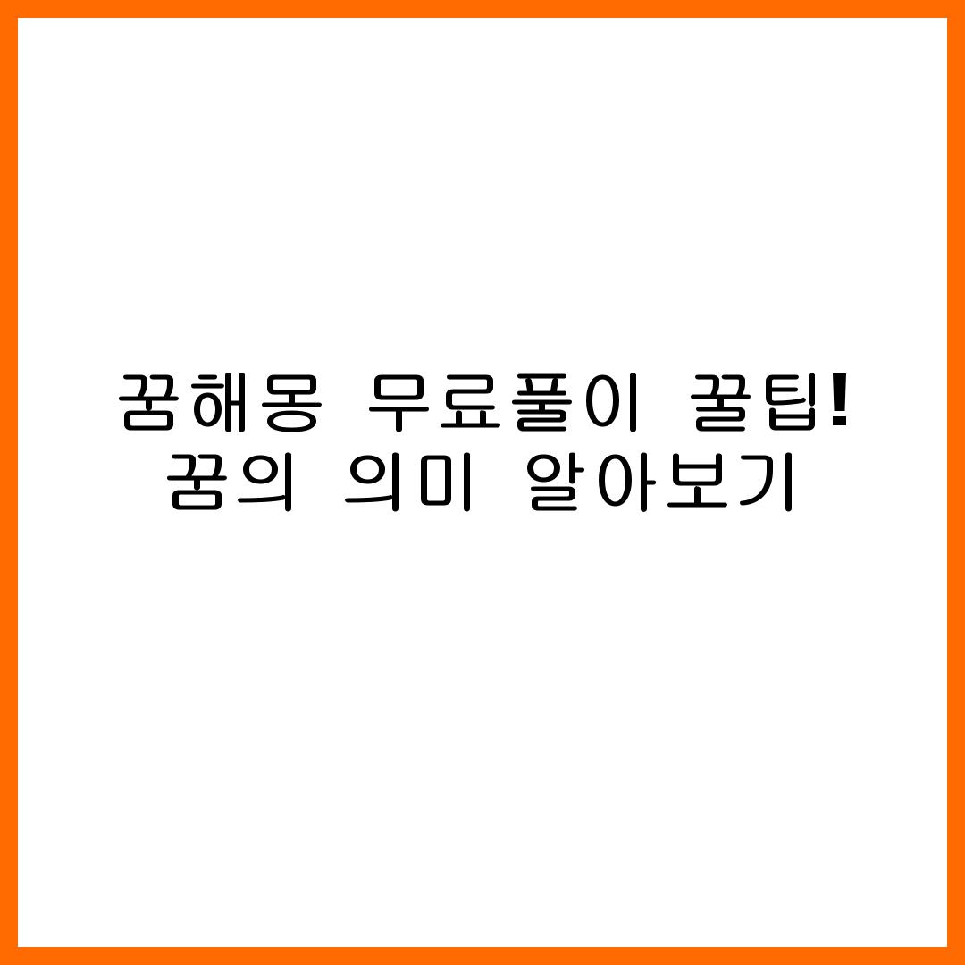 꿈해몽 방법